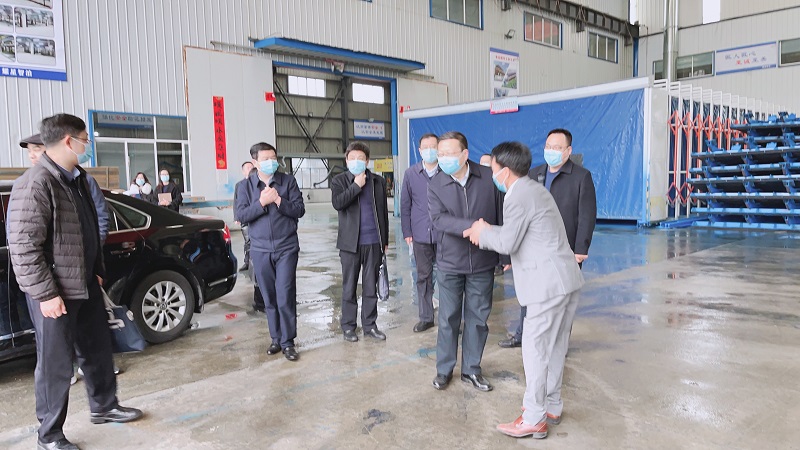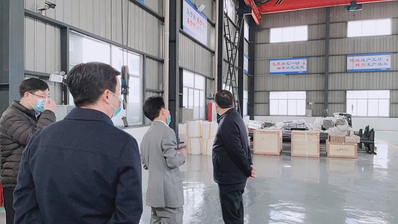 耀星機械董事長向領導介紹介紹項目概況,隨后,大家一同參觀車間的生產工藝以及半成品